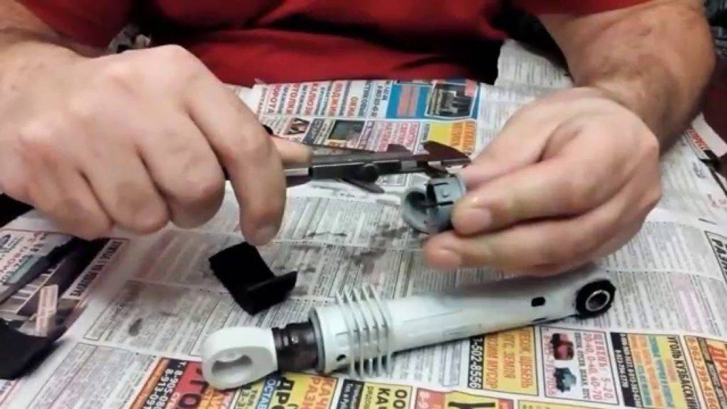 - Установите шток. Теперь вы знаете, как починить амортизатор стиральной машины.