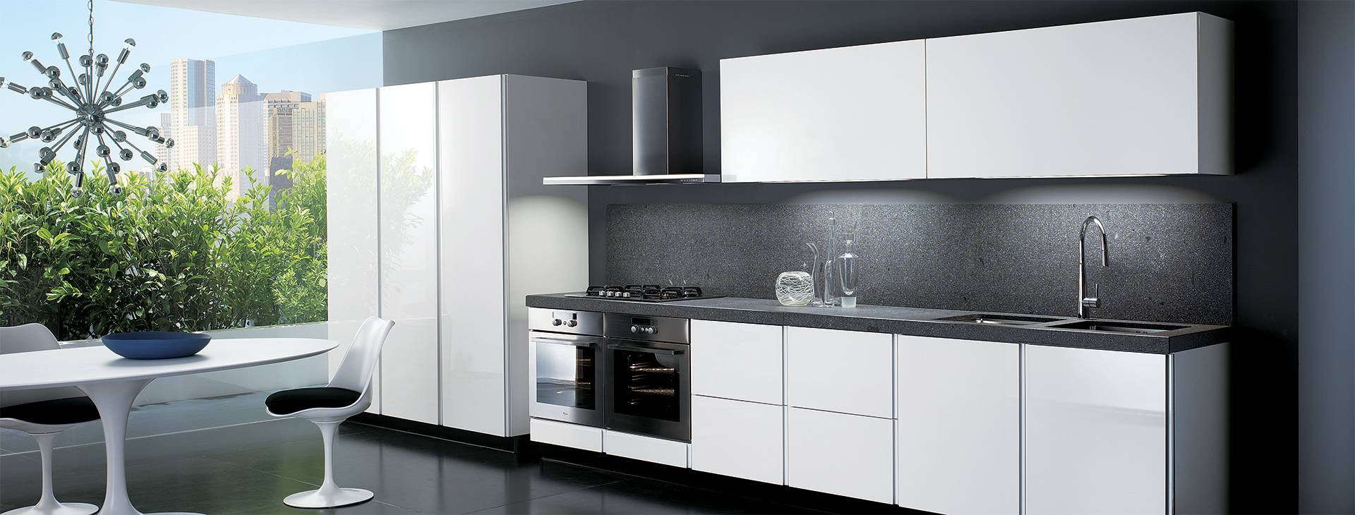 Не следует игнорировать и недостатки этого вида поверхности кухонного гарнитура. На ней возникают блики, поэтому выбор и размещение осветительных приборов должны быть тщательно продуманы. Большие окна на кухне также необходимо защитить от слишком ярких солнечных лучей, которые могут вызывать дискомфорт.