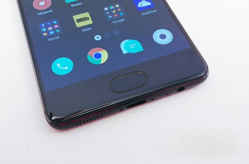 Под экраном мы также не наблюдаем традиционных для других телефонов навигационных панелей. Их роль играет единственная универсальная многофункциональная клавиша, которая умеет различать короткие и длительные нажатия, а также по совместительству работает сканером отпечатков пальцев.