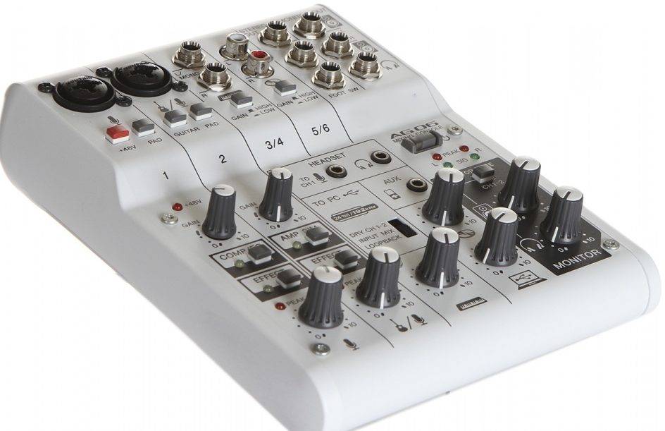 Модель AG06 знаменитой японской компании YAMAHA позволит любому желающему почувствовать себя настоящим ди-джеем. Отличается качеством, бюджетной ценой, небольшими размерами и оригинальным дизайном, поэтому она прекрасно впишется как дома, так и в малогабаритной студии. 6 каналов позволяют одновременно подключать несколько разных инструментов, а наличие встроенного усилителя — использовать микрофон. Также хочется выделить тот факт, что микшер подойдет для использования на радиостанциях, так как в нем предусмотрен встроенный интернет-вещатель, который позволяет транслировать и принимать музыку.