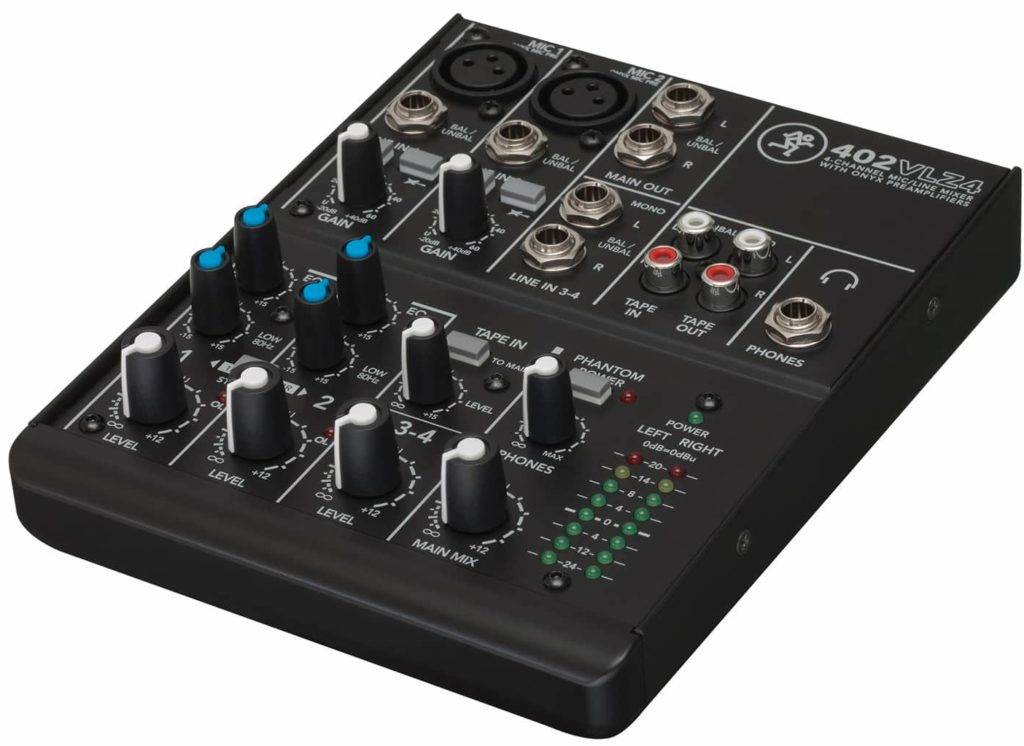 Бренд «MACKIE» выпустил 4-х канальную компактную модель микшера 402 VLZ 4, в нем собрали лучшие технические новинки, благодаря которым производительность прибора значительно повысилась и при этом стоимость осталась доступной. У прибора понижен уровень шум и при этом повышен динамический диапазон. Встроенный блок и эквалайзер были обновлены и доведены до нового уровня качества. В каждом канале установлен низкочастотный фильтр, а у двух первых предусмотрено переключение входящего режима с линейного на инструментальный. На корпусе расположены поворотные герметичные переключатели, устойчивые к попаданию пыли и грязи. Удачное размещение ручек контролеров, позволяет даже в плохих визуальных условиях их заметить. Аппаратура прекрасно подойдет для использования дома.