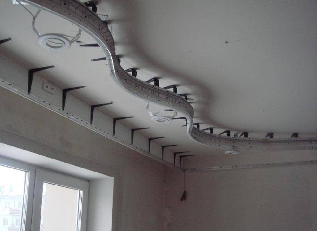 Настенный. Это наиболее распространенный вариант. Профиль крепится к стенам и позволяет легко скрыть неровности базового перекрытия.