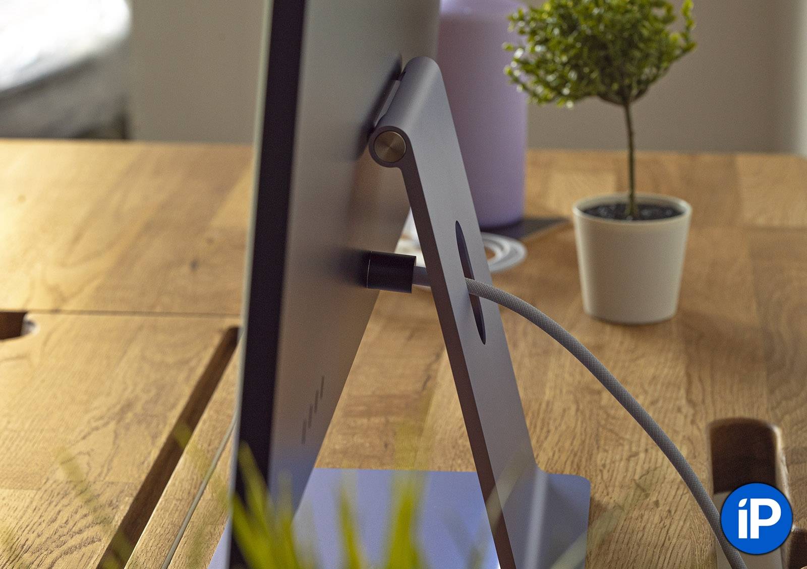 Вырвать кабель при желании тоже можно. Просто нужно реально постараться. При этом моноблок не падает, за что отдельное спасибо. Другой фиксации штекера, кроме магнитов, не предусмотрено. Такой вот почти MagSafe получился для аймака.