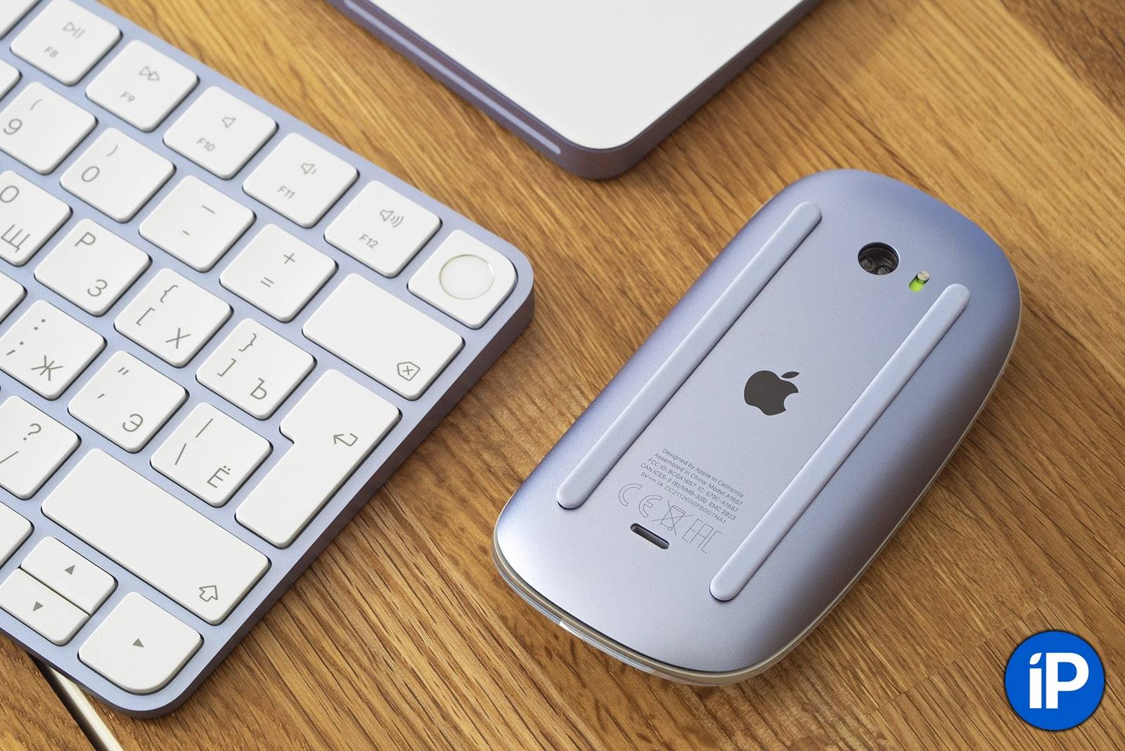 Аксессуары, кстати, в комплекте тоже соответствуют цвету iMac. Мышь Magic Mouse 2 не изменилась, кроме другого оттенка корпуса. Трекпад Magic Trackpad 2 (он докупается дополнительно при заказе) закруглили с углов. Мне так даже больше нравится, не цепляешься рукой.