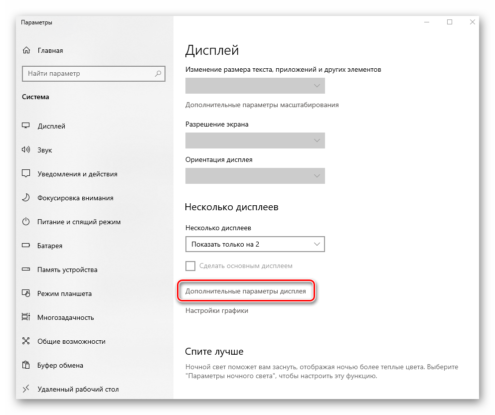 Кроме того, как вариант можете опуститься в самый низ и кликнуть по строке «Дополнительные параметры дисплея».