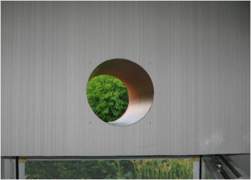 После того, как закреплены все трубы внутри дома, перфоратором делается отверстие притока и заборник воздуха. Для защиты от насекомых на него устанавливается сетка и небольшой навес от непогоды. Хотя отверстие и должно быть ниже вытяжного, но не стоит его монтировать на уровне ближе 2 метров от земли.