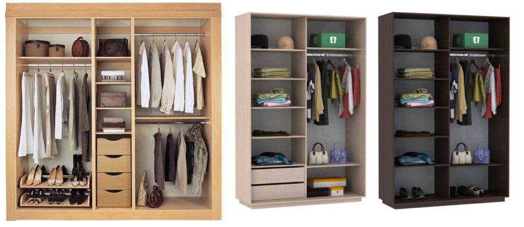 Для двухдверных и трехдверных шкафов вариантов заполнения намного больше, чем для однодверного.
