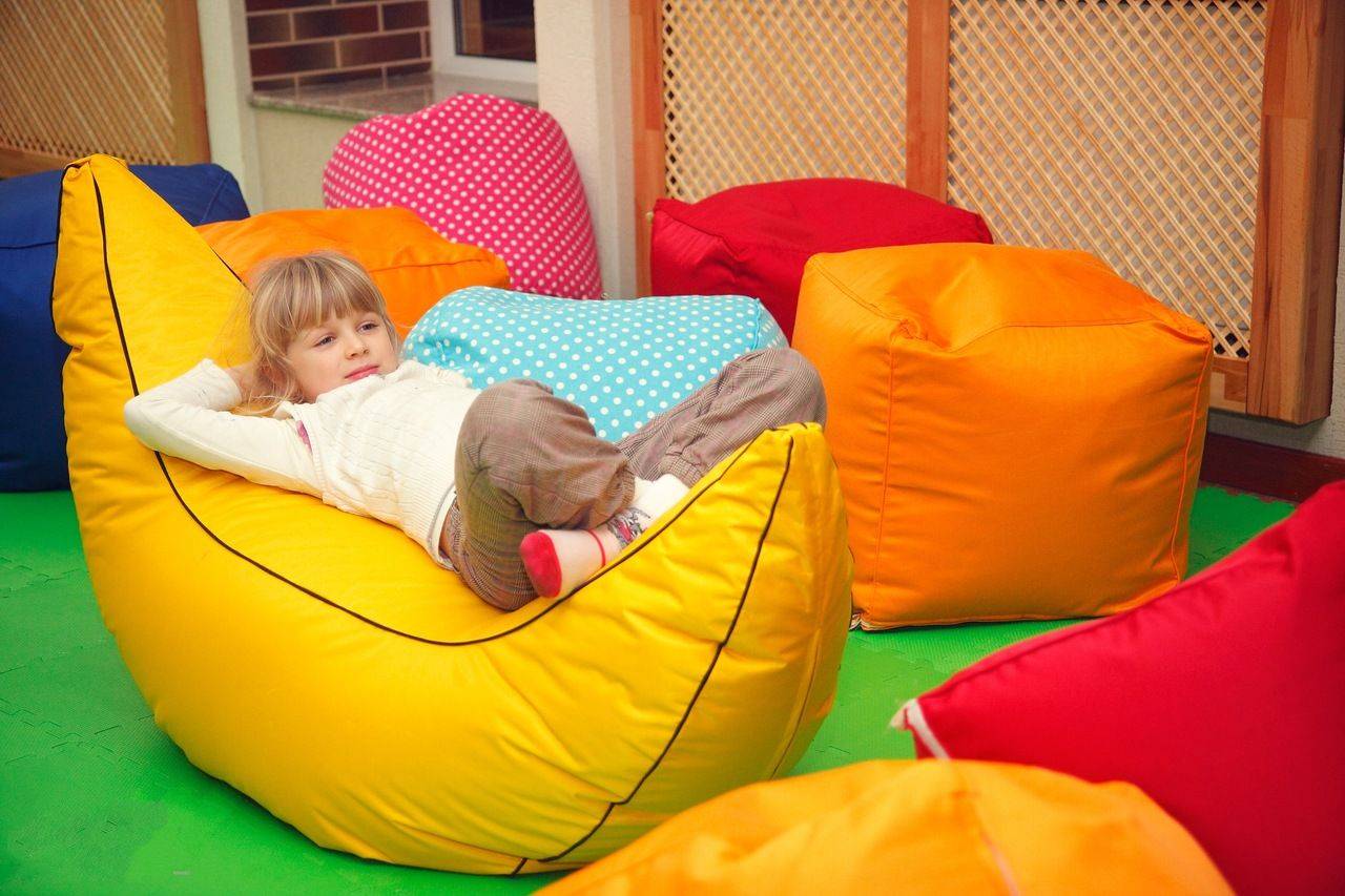 - Бескаркасное кресло распространено для наполнения детских комнат. В зависимости от формы различают кресло-мешок, кресло-груша, кресло в виде футбольного мяча, сердца, и любое другое проявление фантазии.