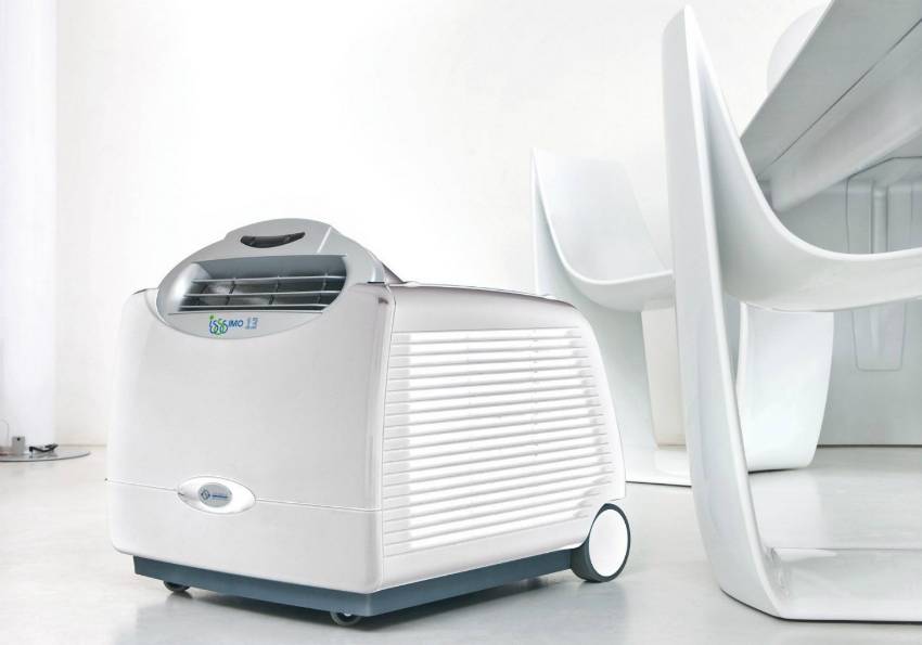 Внутри моноблока имеется холодильная установка, включающая конденсатор, испаритель и компрессор. Помимо этого в конструкцию входит вентилятор, воздушный фильтр и блок управления. В некоторых моделях имеется специальная помпа для вывода конденсата в виде испарений. В любом случае это компактная установка, которая легко монтируется и также просто снимается в нужный момент.