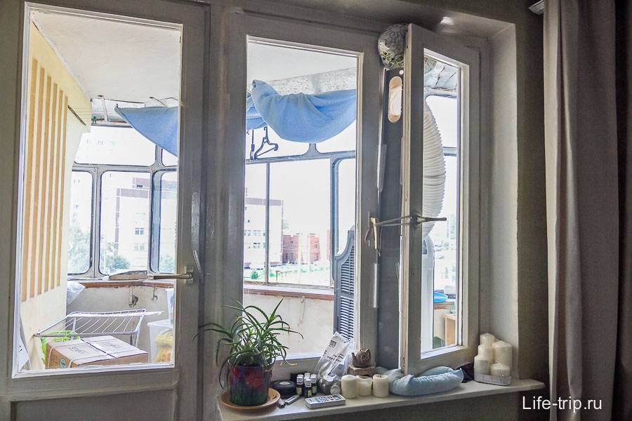 Что еще можно сделать, чтобы улучшить визуальный вид щели в окне? А то смотрится так себе… Например, можно сделать вставку из пластика/картона/фанеры в самом окне с дыркой под воздуховод (вместо москитной сетки). А если у вас есть маленькая форточка (как раньше были), то вставку вообще, наверное можно не делать. Так же есть вариант пробурить отверстие в бетонной стене (вызывается бригада и за час делает) или же вырезать его в балконной двери самостоятельно. Последнее гораздо проще и я подумываю это сделать, но пока не придумал, как быть с тем, что балконная дверь будет открываться и подсоединенный к ней воздуховод будет мешать.