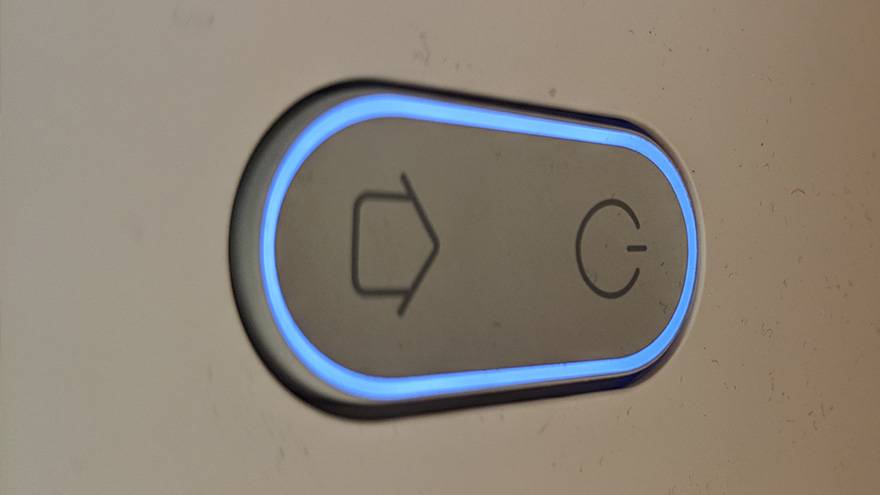 - Светодиодный овал вокруг кнопок «Включение» и «Дом» загорелся белым светом. Это означает, что пылесос заряжен более, чем наполовину.