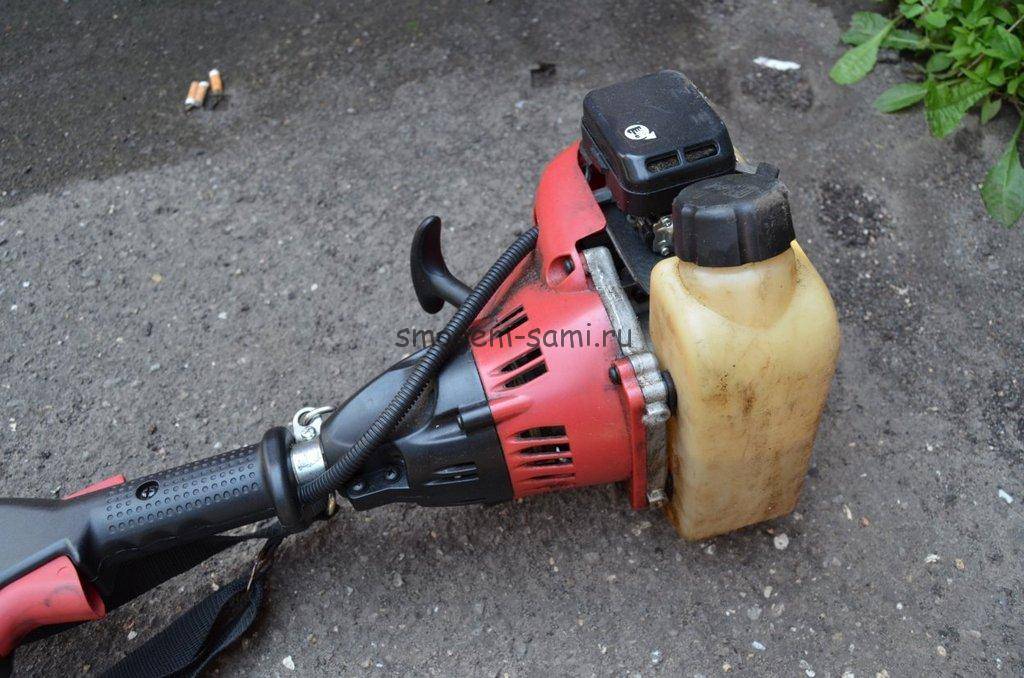 Чаще всего с такой причиной встречаются неопытные владельцы триммеров, которые не умеют определять время работы на одной заправке. Никакого вреда мотору триммера это не приносит, но после заправки бака топливом необходимо прокачать горючее по системе, если же доливать бензин до того, как он закончится, то можно обойтись без подкачки.
