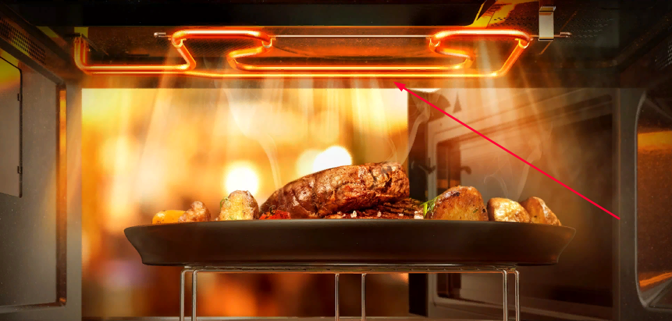 Прибор дополнен грилем, что позволяет готовить блюда быстрее по сравнению с духовой камерой.