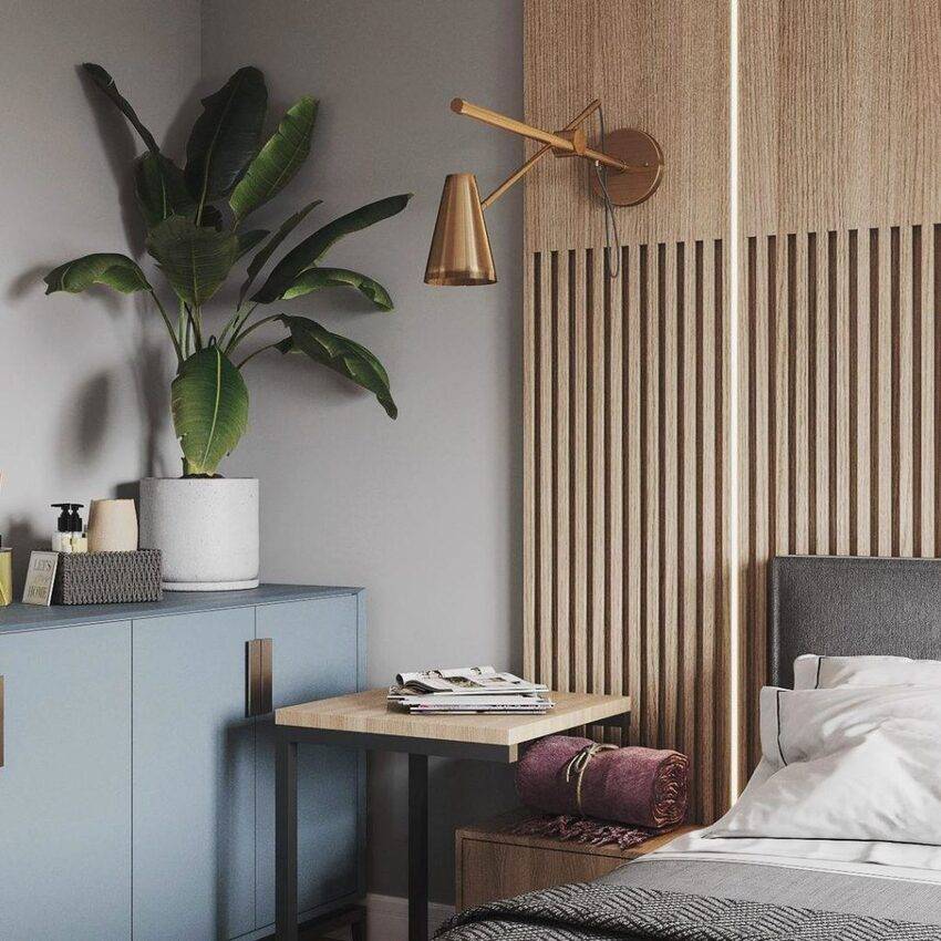 Фасады мебели тоже скрываются и делаются вровень со стеной. Например, если это шкаф, то он должен быть незаметным. Чтобы его выделить, стоит поиграть не цветом, а текстурами. Можно сделать реечный фасад с выгнутыми и вогнутыми частями, установить необычную ручку или использовать интересные фактуры МДФ.