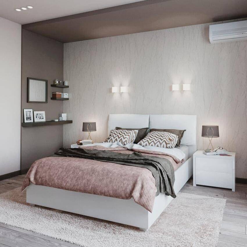 Спальня, оформленная в стиле минимализм, должна быть хорошо освещена. Грамотно организованная игра тени и света позволит придать комнате уют, визуальный объем, и комфорт при отдыхе. Поэтому ответственно подойдите к выбору осветительных приборов и их размещению.