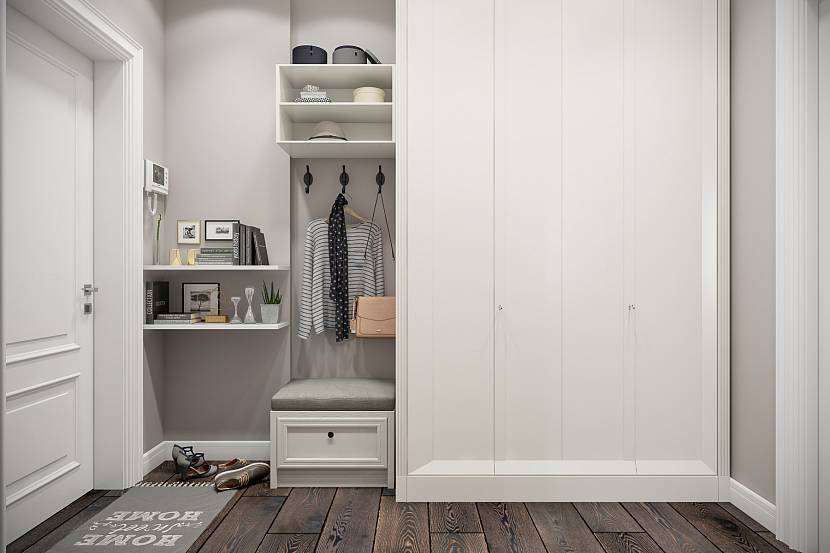 Мебель со встроенной скамьей помогает увеличивать и отказываться от покупки дополнительных предметов интерьера, расстановка которых займет дополнительное пространство. Присев на встроенную скамью, удобно надевать уличную обувь, снимать ее после возвращения домой.