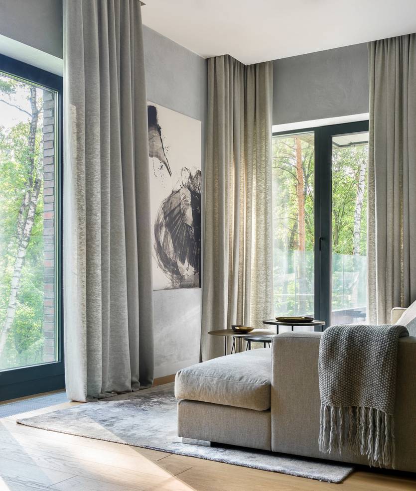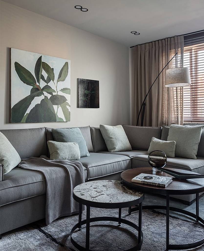 1. Больше текстиля. Сочетайте диваны и кресла в разной, но близкой по тактильным эффектам обивке, не игнорируйте ковры. Лен, хлопок, рогожка, бархат или замша не позволят глазу заскучать и наполнят теплом даже самую аскетичную обстановку.