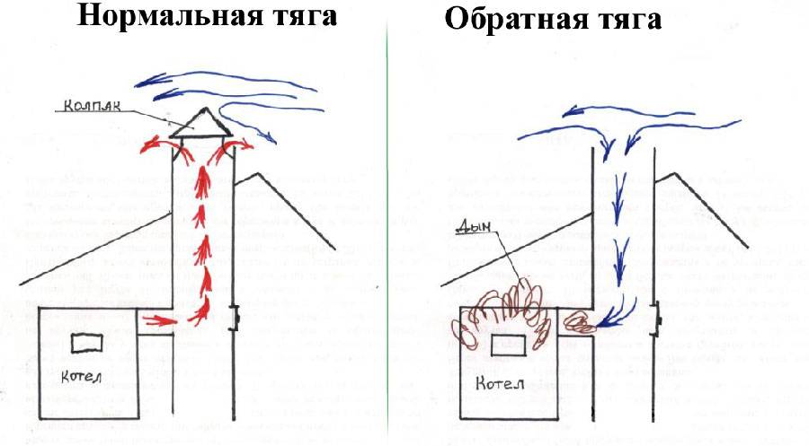 Основная причина возникновения обратной тяги – появление препятствий на пути движения дыма. Физика распространения газов такова, что движутся они всегда в том направлении, где им ничего не мешает.