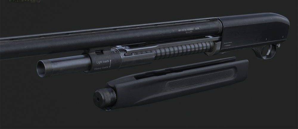 Ружье МР-153 работает на принципе отвода части пороховых газов из ствола. Пороховые газы из ствола отводятся через два отверстия диаметром 3 мм, расположенные примерно в одной трети от казенной части ствола.