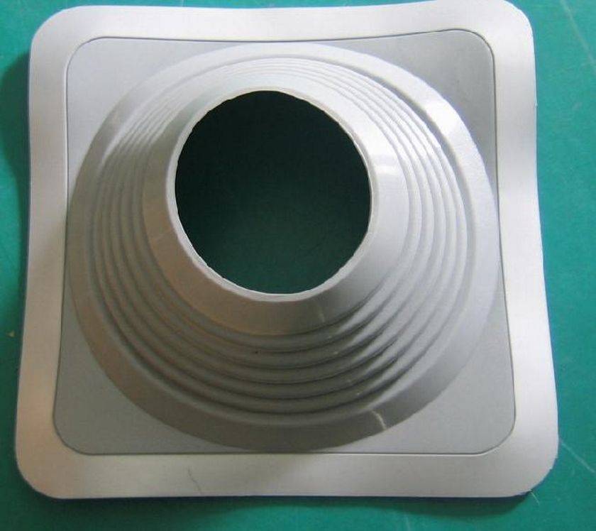 Проходка, плотно установленная на проходном участке воздуховода, имеющая опорное кольцо и присоединительный фланец. Он имеет определенный угол наклона, а также специфический рельеф, повторяющий рисунок того или иного типа кровельного покрытия.