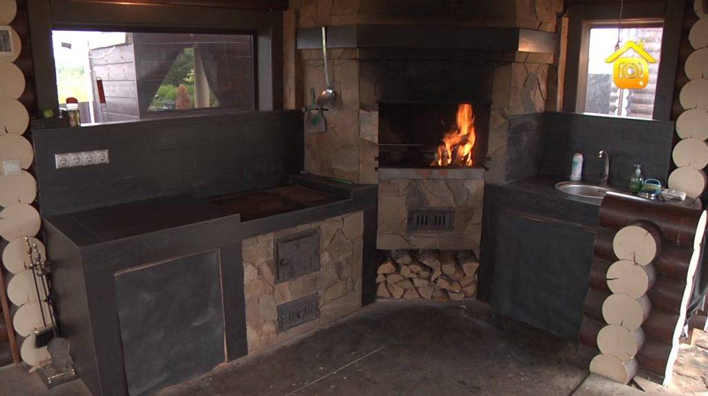 В дополнение ко всем приспособлениям для приготовления пищи здесь будет уместен и камин. Это позволит не только готовить вкусные блюда, но и наслаждаться теплом и приятной обстановкой.