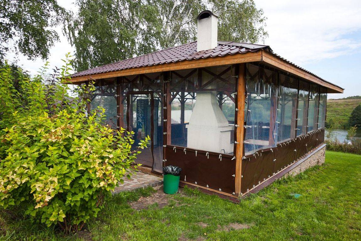 - Застекленная беседка. С помощью застекленной конструкции можно готовить шашлык в любую погоду.