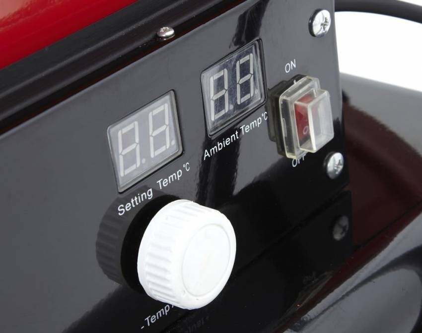 Тепловое приспособление на 10 кВт обладает производительностью 450 м3 в час. Бак у модели средних размеров, на 19 л. Расход умеренный — около 0,8 кг солярки за час. Устройство оснащено термостатом и поддерживает регулировку нагрева.