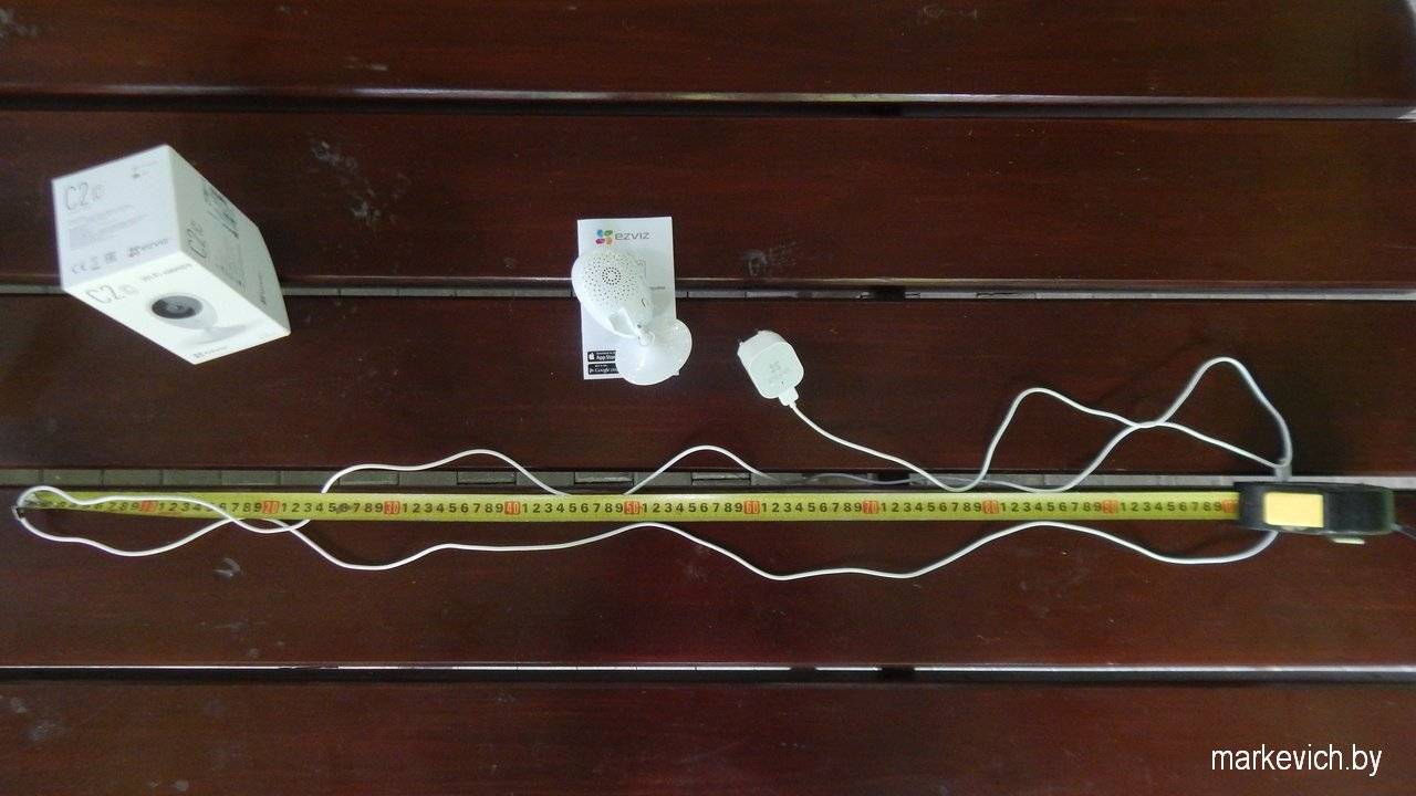 Длина кабеля идущего в комплекте с Ezviz C2C приблизительно 2,5 метра, в отличии от C2mini здесь кабель жёстко с камерой не связан, соединение разборное. Блок питания содержит световой индикатор.