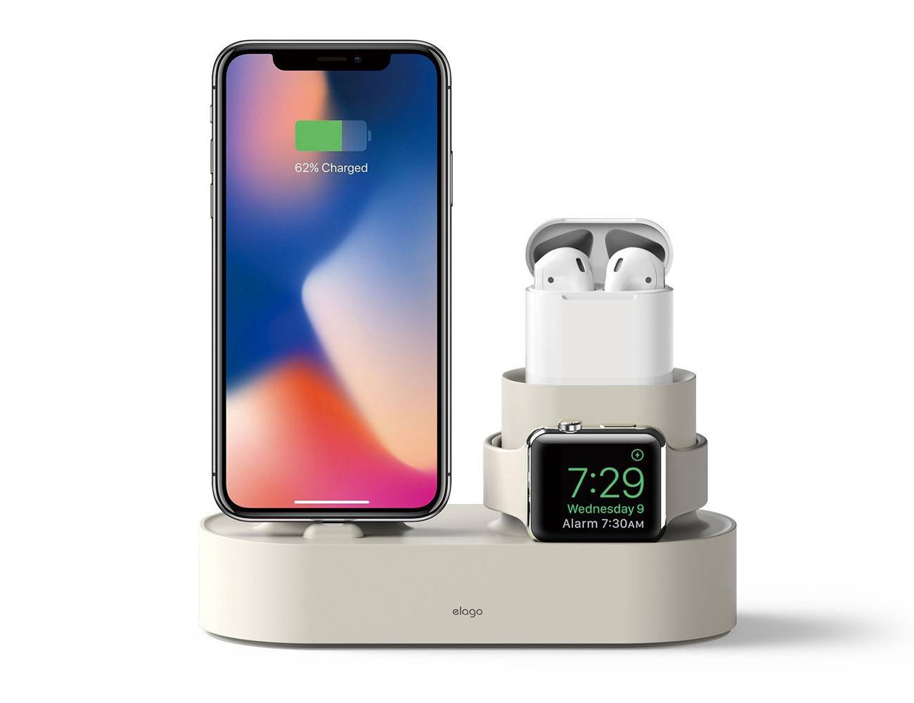 Главное отличие от вышеперечисленных моделей — наличие коннектора для зарядки наушников AirPods. Стильная алюминиевая док-станция, которая позволяет начать день на 100% заряженным.
