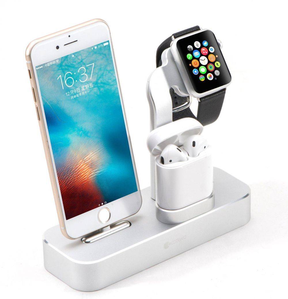 Фанаты Apple редко жалуются на девайсы любимого бренда, но некоторое недовольство все же есть. С отказом от стандартного разъема для подключения гарнитуры и выпуском AirPods у пользователей появилась необходимость заряжать не только смартфон, но и наушники. Новая док-станция COTEetCI Base19 решает эту проблему, ведь у нее есть сразу три посадочных места для одновременной зарядки iPhone, AirPods и .
