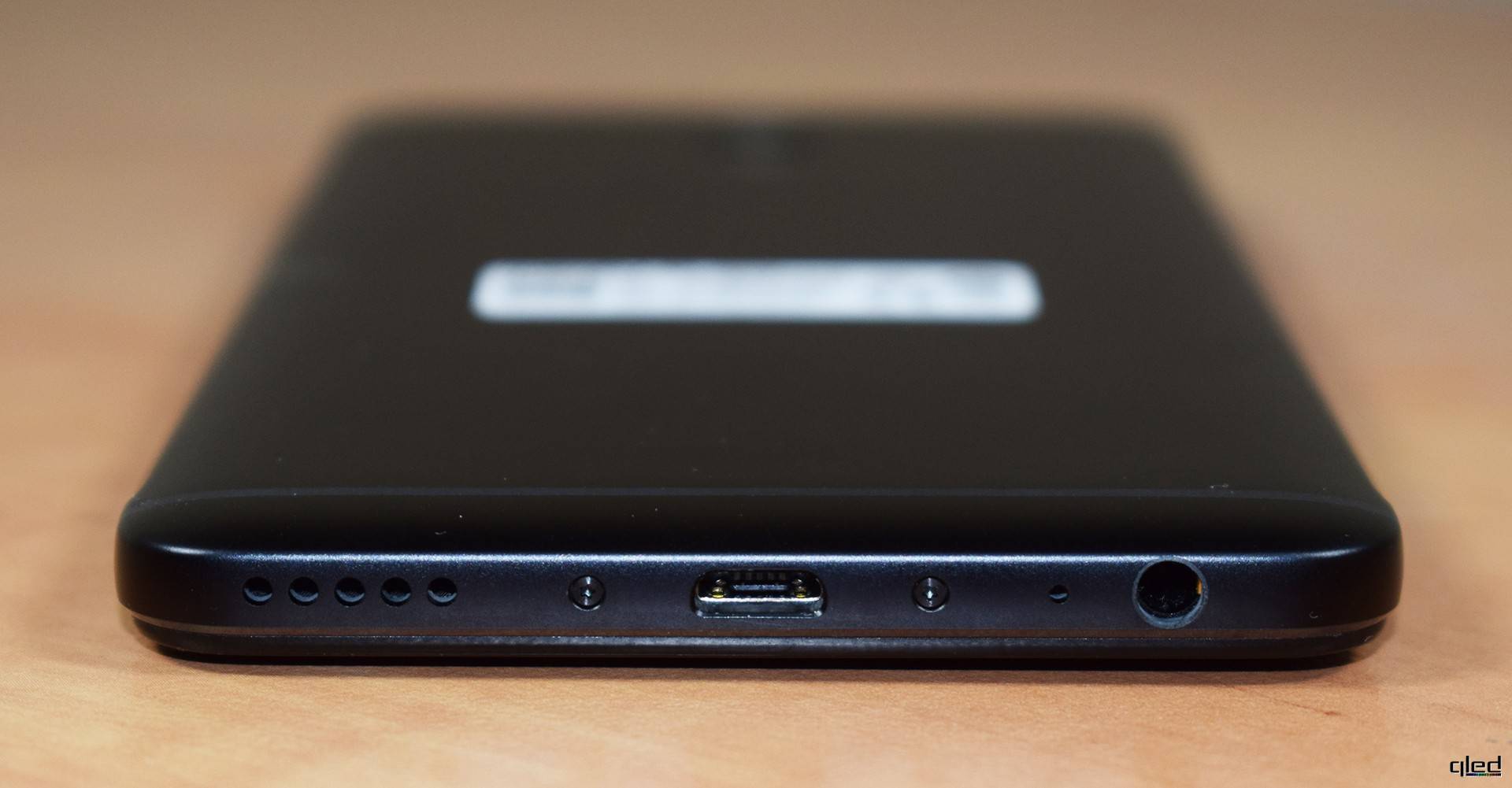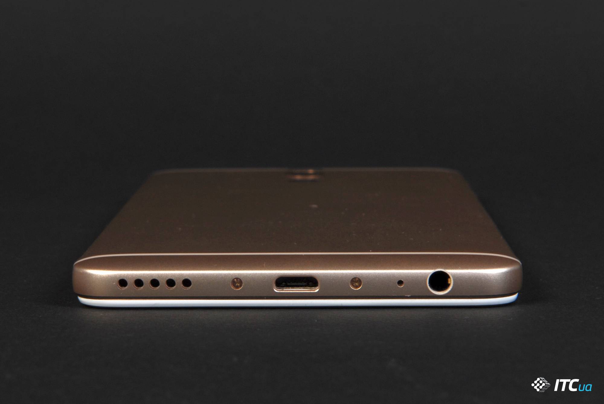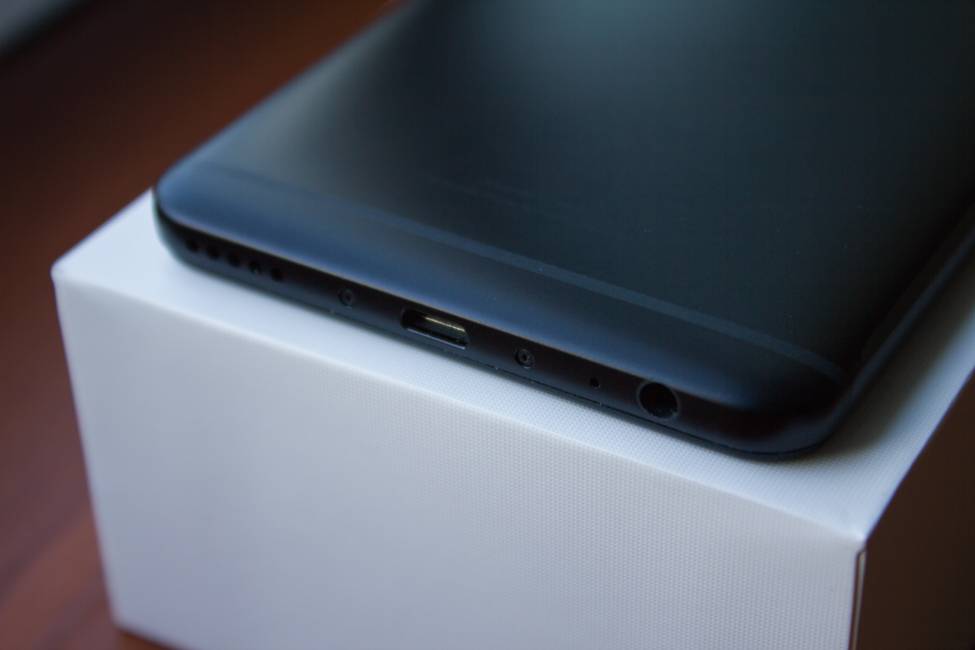 На нижней грани ровно по центру видим порт microUSB, по бокам от которого находятся винтики. Справа от него 5 отверстий за которыми расположен основной динамик. Слева же находится основной микрофон и аудиоразъем 3,5 мм.