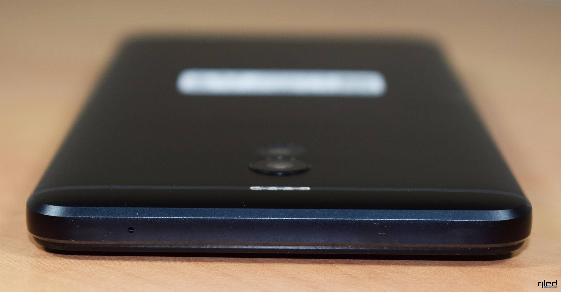 На задней части сверху видим пластиковую полоску для антенн, по центру которой расположили двухтоновую светодиодную вспышку из четырех светодиодов. Необычное решение. К слову, вспышка также может выполнять роль индикатора событий, например при входящем вызове, когда устройство в заблокированном состоянии, — светодиоды поочередно мигают. Дальше наблюдаем два глазка камеры. Тот, что повыше (основной) — слегка выступает из корпуса, а который пониже (дополнительный) — наоборот, слега утоплен в корпус. Под объективами логотип компании, а почти в самом низу служебная маркировка и вторая пластиковая полоска антенн.