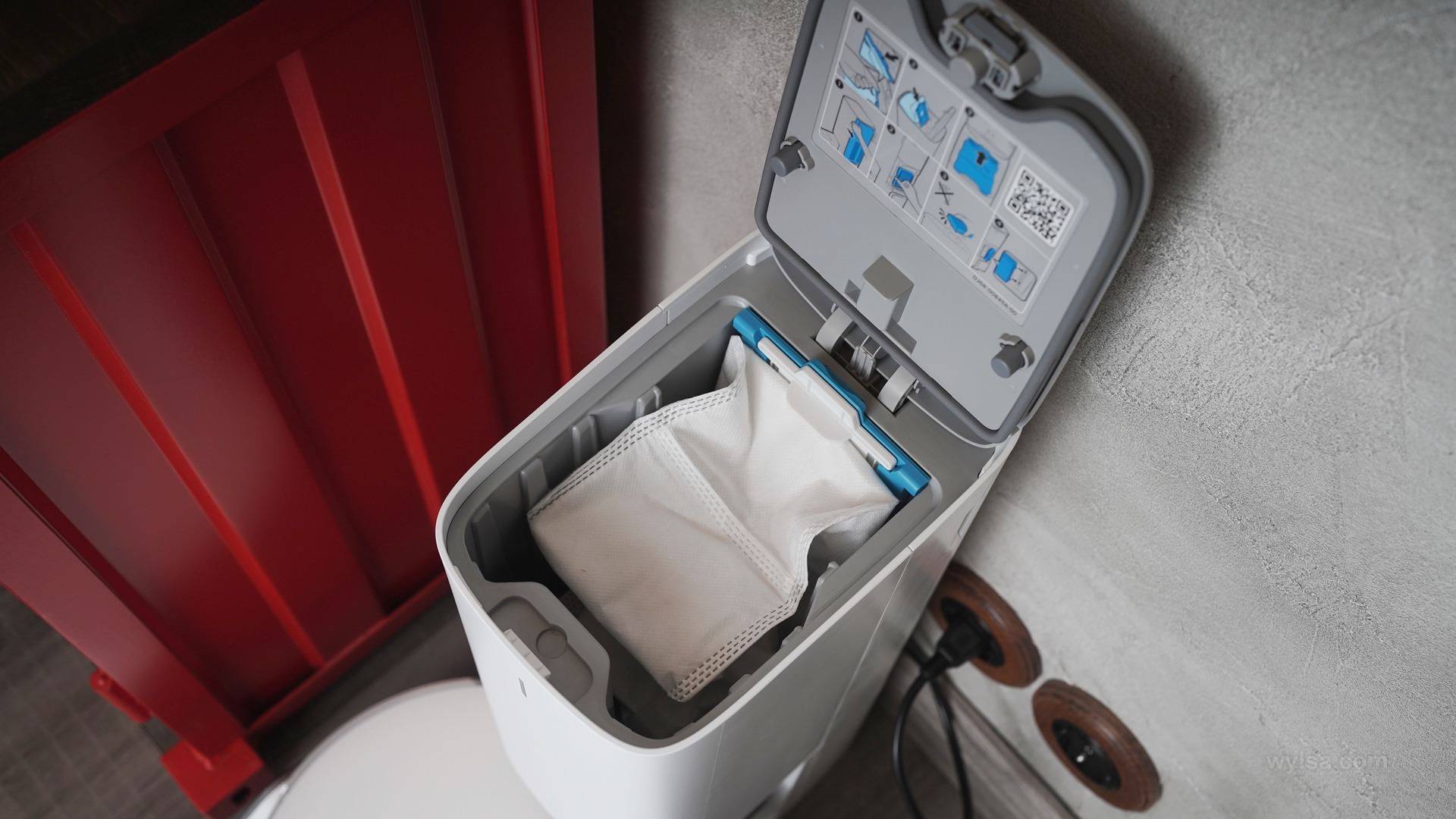 Закончив своё грязное дело, пылесос паркуется и оставляет мусор в специальном контейнере, отправляя его из бака для сбора пыли в мусорный пакет. После того как пакет заполнится, выбрасываете его и устанавливаете новый. В зависимости от степени загрязнения его хватает на 1-3 месяца. Надеюсь, что со сменными мешками проблем не будет.