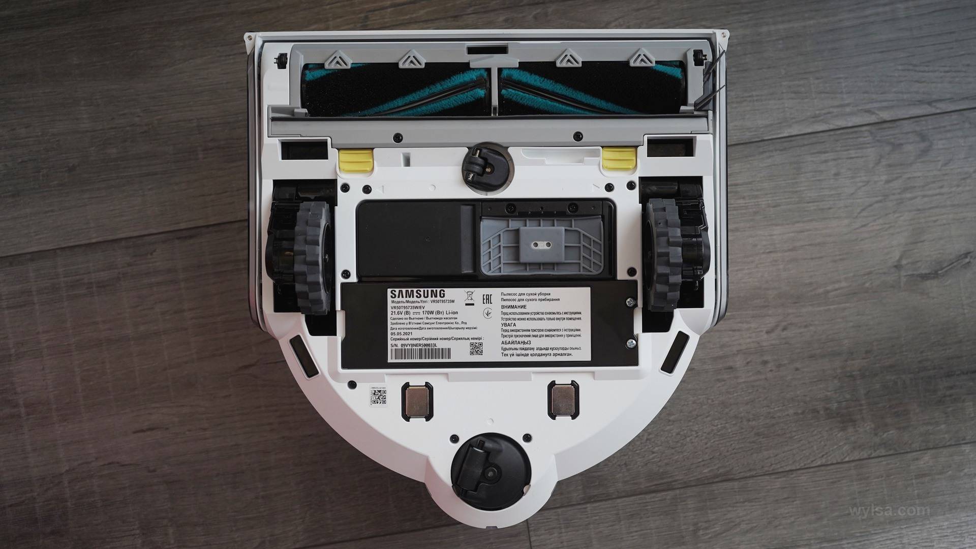 Контролировать работу удобнее через приложение SmartThings, но для основных задач хватает пары кнопок на корпусе. Одна клавиша запускает уборку или ставит на паузу, а вторая отправляет пылесос на базу. Предусмотрено и отключение питания физической клавишей на всякий случай.