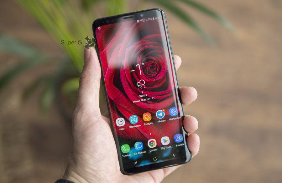 - В стандартном тесте, проигрывании из интернета H.264 FullHD видео, максимум яркости и громкости — Samsung Galaxy S9 выдерживает 12.5 часов.