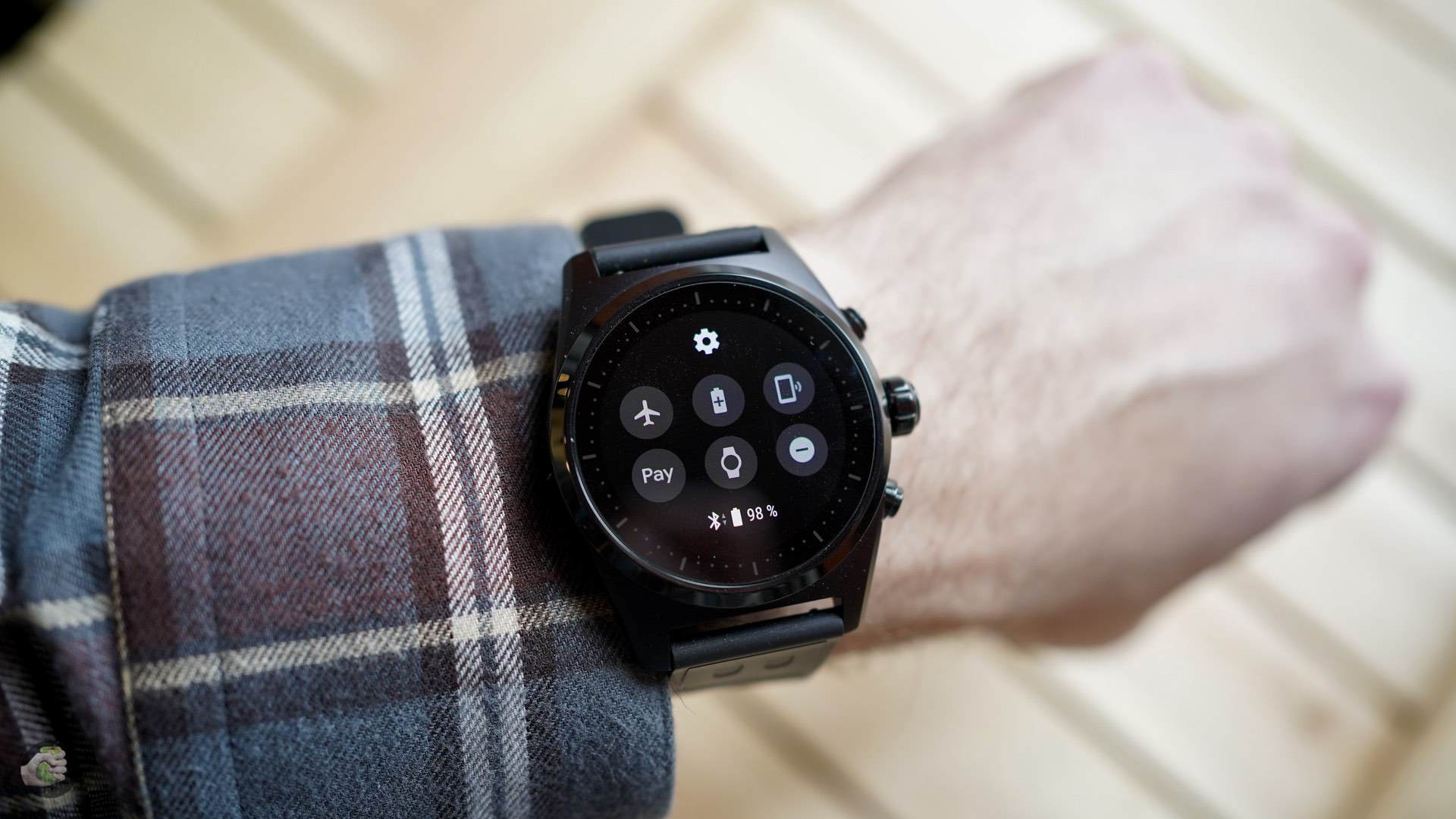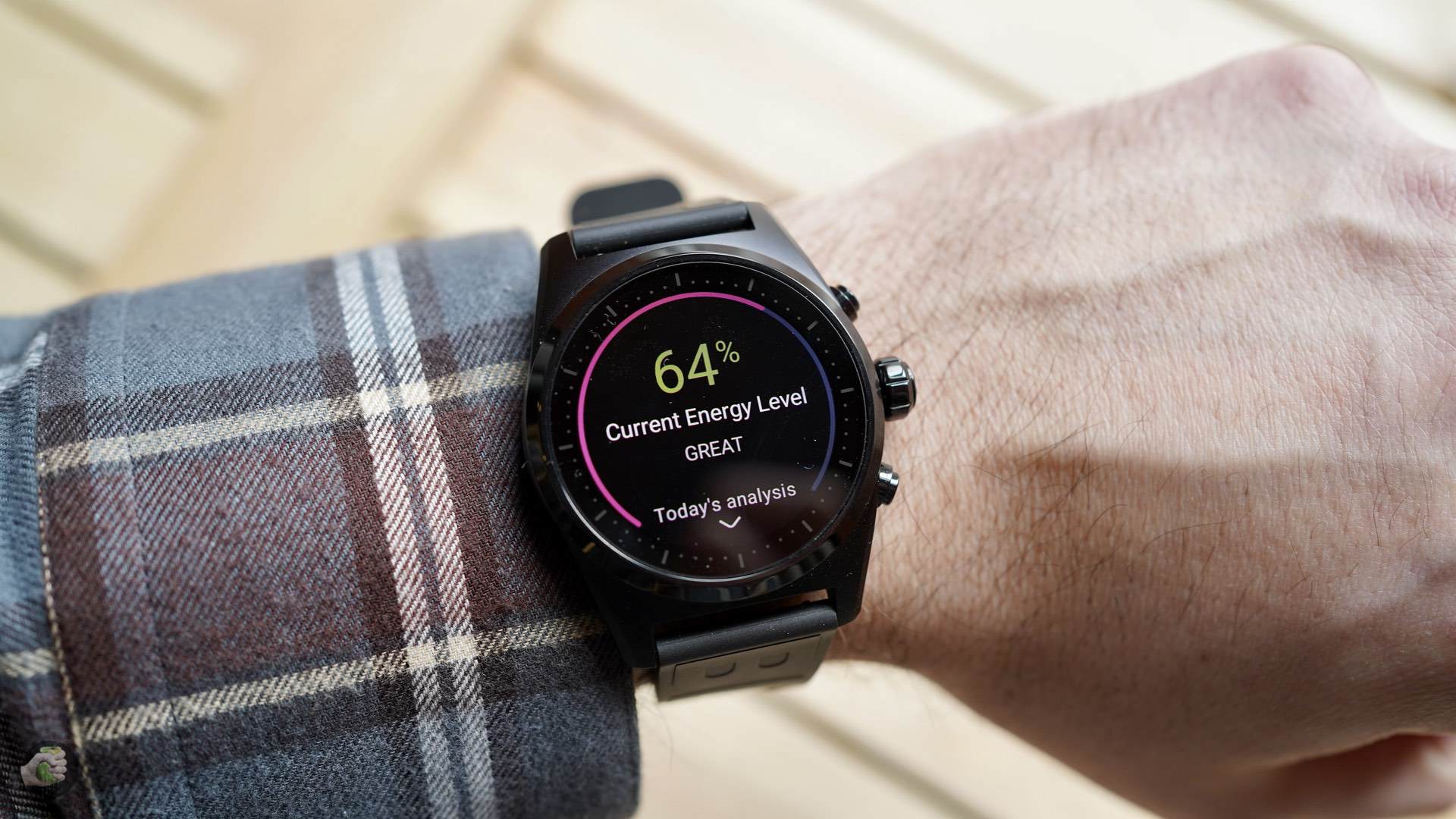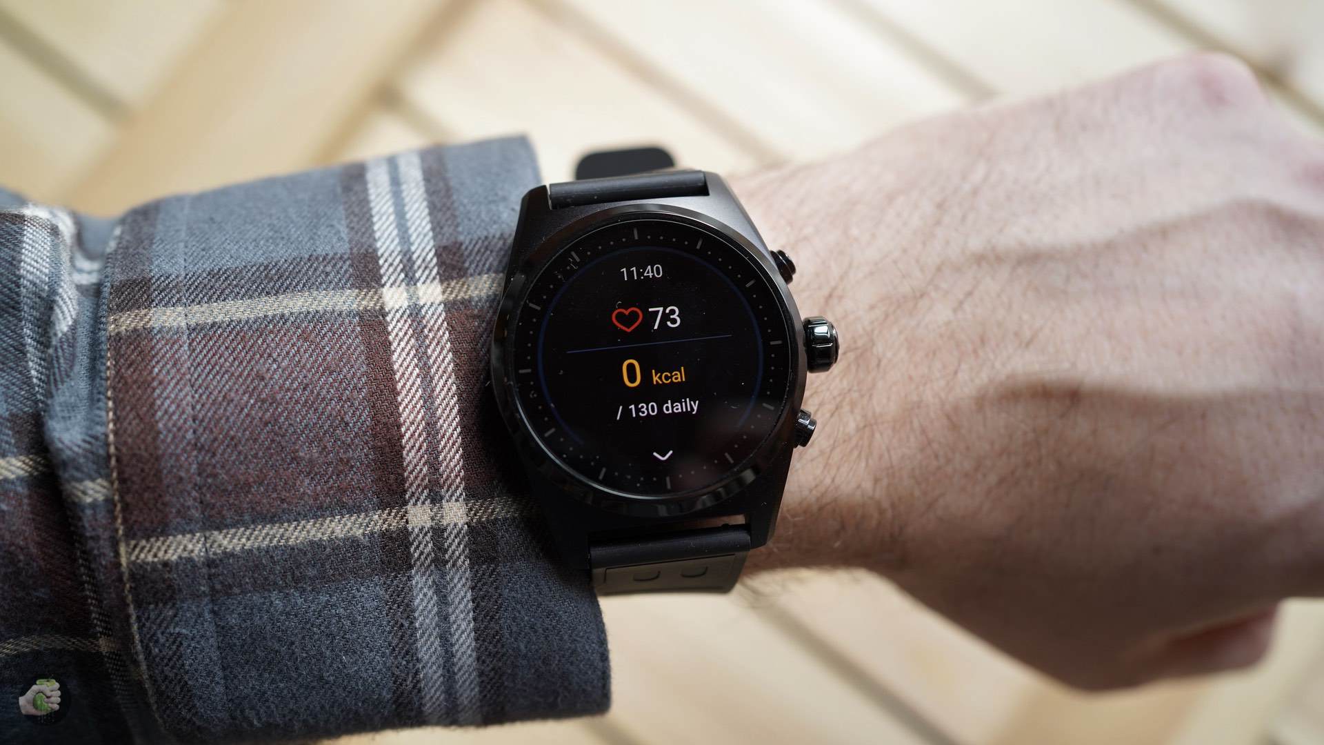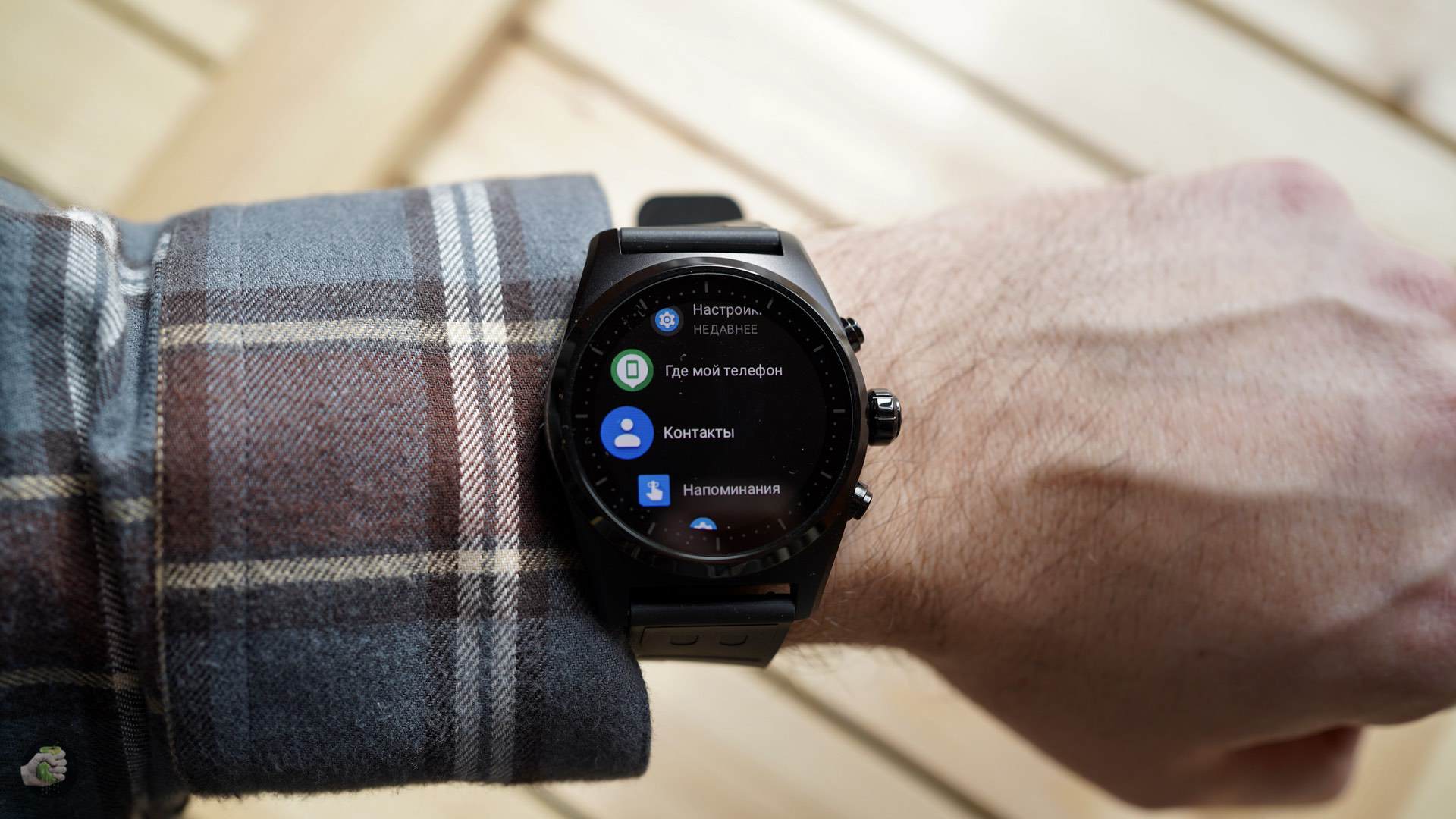 Дисплей, как вы сами видите, круглый, AMOLED, сверху Gorilla Glass, две кнопки и крутящаяся «заводная головка», её можно использовать для ряда функций. Толщина корпуса 12,8 мм, алюминий защищает тоненькую плату с процессором Qualcomm Snapdragon Wear 3100, оперативной памяти гигабайт, ну и 8 ГБ для данных. Конечно, микрофон-барометр-акселерометр-датчик сердцебиения есть, NFC работает с Google Pay, для настройки два раза нажмите верхнюю кнопку (для оплаты тоже).