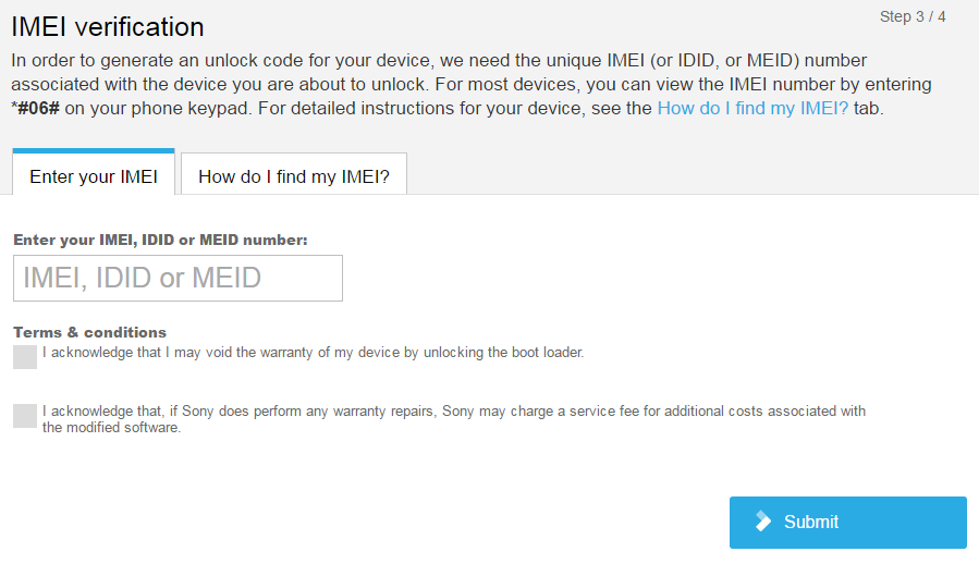 После того, как у вас есть резервная копия DRM-ключей из раздела TA, вы можете перейти к процессу разблокировки загрузчика. Вам нужно получить код разблокировки от SONY — это очень просто и бесплатно, просто заполните форму на своем официальном сайте, сообщите подробности своего телефона, а затем дождитесь возврата кода.