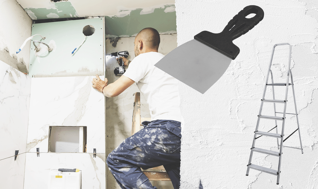 - Начните демонтировать старую штукатурку или кафель. Тут вам могут пригодиться инструменты: молоток, зубило, кувалда, перфоратор. Стены нужно очистить до основного твёрдого слоя, чтобы ремонт был качественным. Помните, что в стенах могут находиться электропровода, трубы, поэтому обеспечьте безопасность этих действий. Начните выполнять работы сверху вниз. Сначала потолок, потом стены и пол.