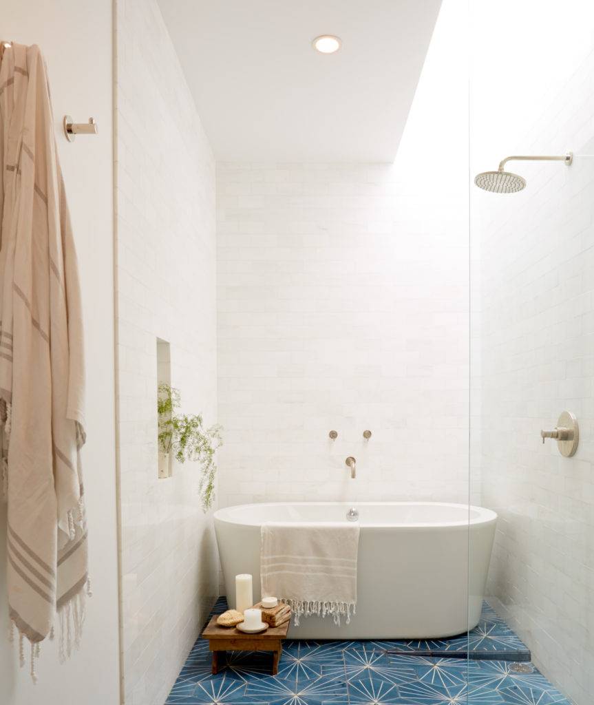 Еще один способ сэкономить деньги-это просто сделать частичный ремонт. Если части вашей ванной все еще находятся в хорошем состоянии, такие как раковина и ванна, то вы можете оставить их такими, как они есть, и просто заменить душ и краны на что-то более современное, чтобы придать обновленный вид. Поскольку сантехника потенциально может быть одной из самых больших затрат во время ремонта, это может сэкономить вам много времени и денег, позволяя сосредоточиться на стенах, полах и аксессуарах для обновления пространства.
