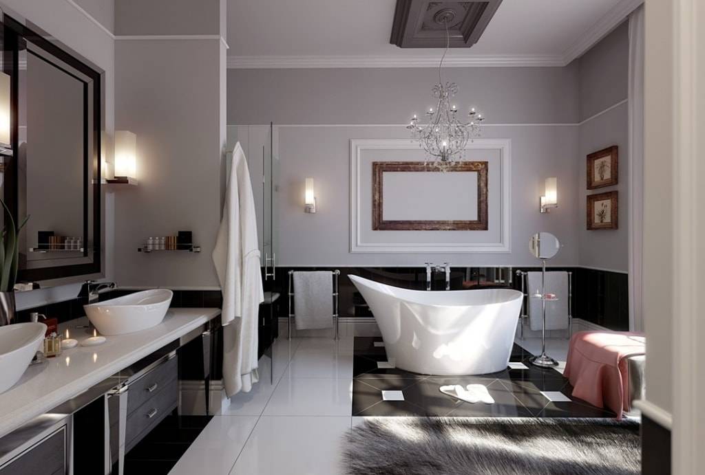 Осветительные приборы в ванных комнатах имеют несколько вариантов для стандартного размещения. Места для установки светильников зависят от стиля оформления, площади и пожеланий владельцев.