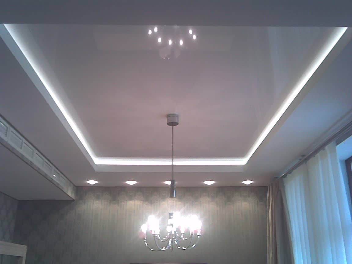 Короб из гипсокартона вокруг натяжного потолка