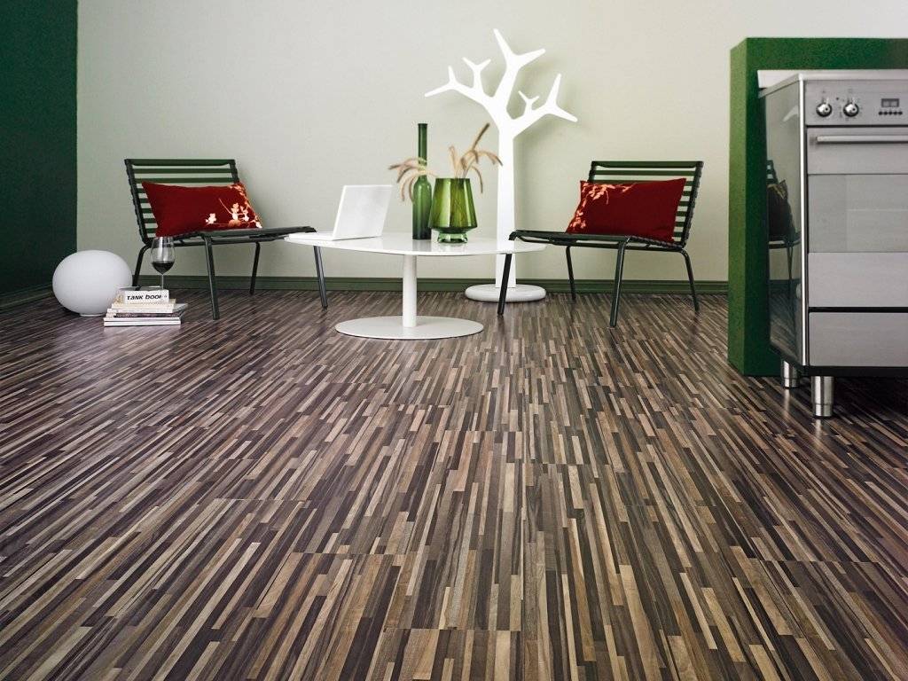 - Паркетную разновидность можно сравнить с ламинатом: она монтируется всеми методами. Самым быстрым вариантом укладки является использование замкового соединения, позволяющего получить «плавающую» конструкцию, но это потребует настила защитного акустического слоя.