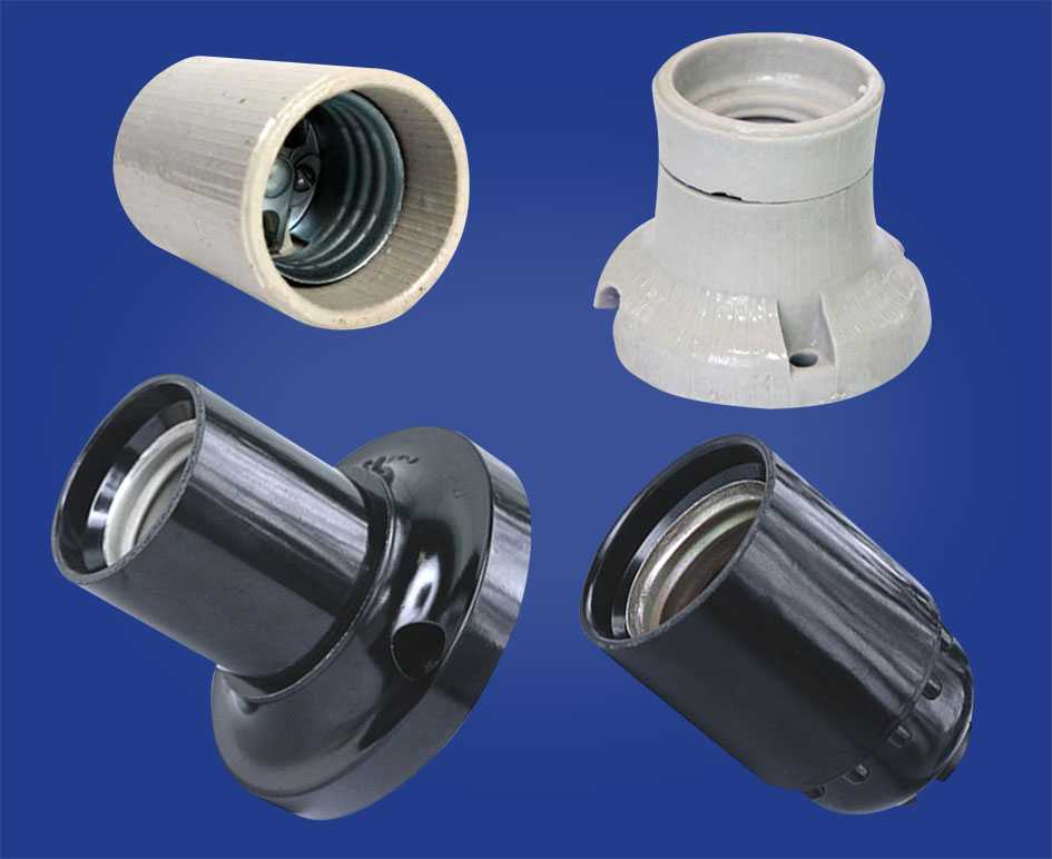 Любой патрон состоит из трех обязательных элементов – это гильза с резьбой, донышко и керамический вкладыш. Гильза находится в цилиндрическом корпусе и в нее вкручивается лампочка. Изготавливается корпус из пластика (наиболее распространенные), керамики, металла, карболита.