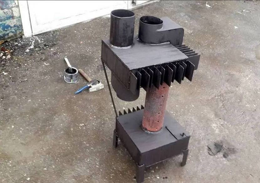 На заключительном этапе работы можно покрасить печку. Выбирайте жаропрочную краску по металлу.