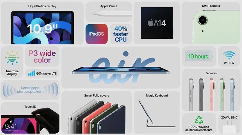 Фронтальная камера в новом iPad на 12 Мп против 1,2 Мп у старого. Время работы не изменилось. Всё тот же Bluetooth 4.2 и Wi-Fi 5 в обоих планшетах.