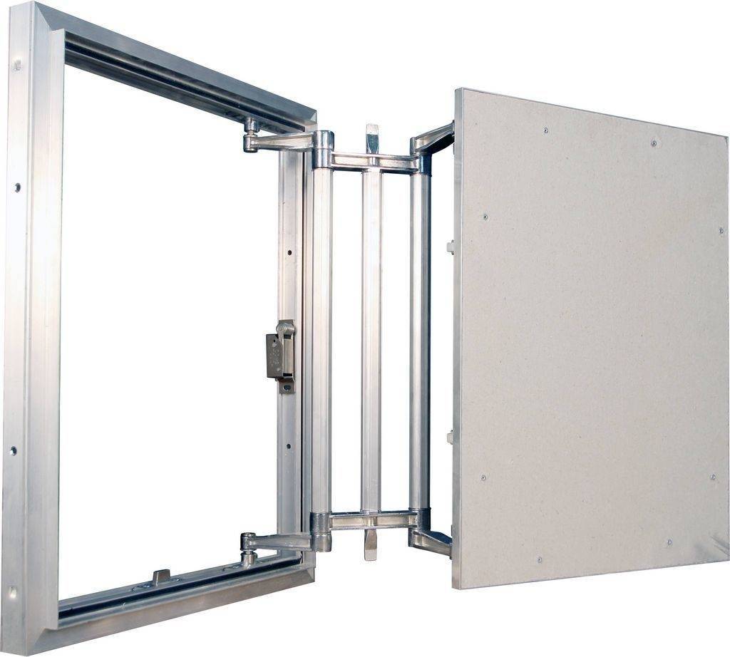 Это поможет избежать провисания дверцы, что со временем может произойти с широкой однодверной моделью. Тип открывания-закрывания люка может быть распашным, нажимным, откидным или сдвижным. Для помещений, где технический люк испытывает серьезные эксплуатационные нагрузки, лучше выбирать усиленные конструкции.