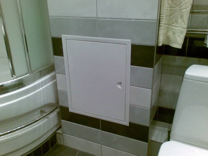 Когда все значимые запорные, регулирующие и водоразборные устройства замаскированы за фальш-стеной, но сосредоточены в одном месте, соорудить люк для доступа к ним намного легче. Дверца будет отличаться большими размерами, однако это не повредит ни внешнему виду перегородки, ни функциональности люка.