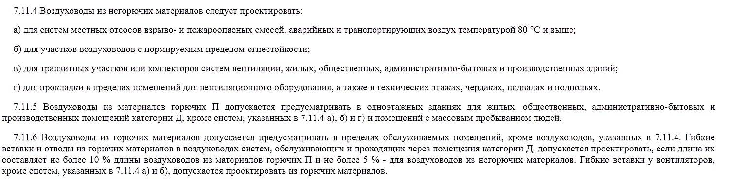 - не допускается прокладка гибких и полужестких воздуховодов, если длина вертикального отрезка составляет более 7 метров;