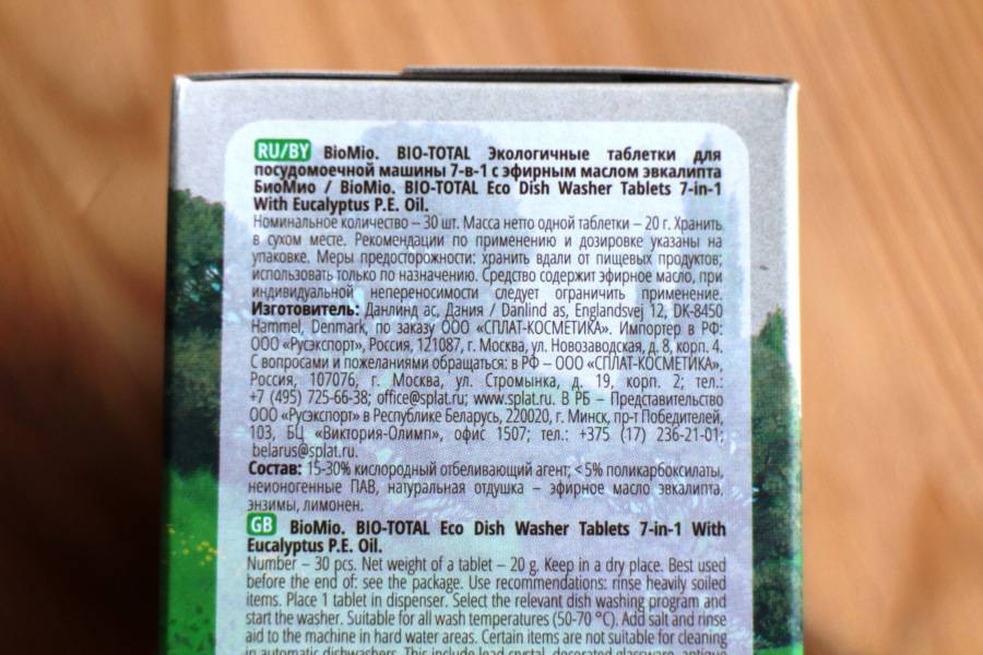В номенклатуру выпускаемой продукции Bio Mio входят и таблетки для посудомоечных машин. В одной упаковке содержится 30 таблеток. Этого запаса хватает на один месяц.