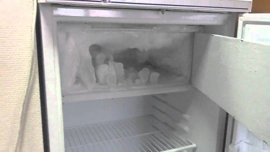 - Загляните в морозилку — если вы давно не размораживали камеру, то в ней могло намерзнуть много снега или льда. Наледь или «шуба» создают помехи для датчика, поэтому на него поступает неверные данные. Требуется размораживание в течение 10-24 часов.